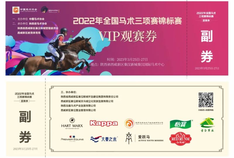 数量有限,凭票进入,一人仅限领取一票,三场比赛都可观看。开赛当天请前往秦汉国际马术中心门岗处领取,需出示本人有效证件和官方互动截图。