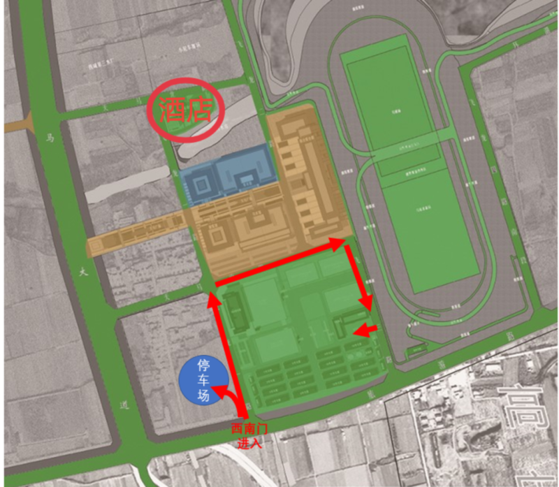 为配合全国马术比赛场地安全要求,2023年3月16日至2023年4月9日,暂时关闭马术中心东南门,所有车辆从西南门进出(如下),外来车辆进临时停车场有序停放,办公区车辆凭证进入,安保人员配合疏导停放,给您带来的不便敬请谅解。