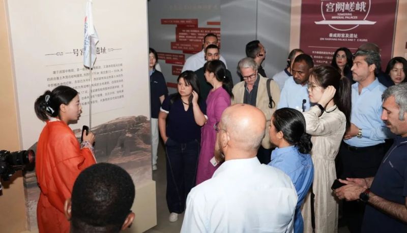 活动第一站,来自毛里塔尼亚、尼泊尔、乌拉圭、伊拉克、韩国、巴基斯坦、伊朗等20个国家的驻华外交官,走进位于西咸新区秦汉新城的秦咸阳城咸阳宫国家考古遗址公园,参观秦咸阳宫遗址博物馆,在古今对话中深入了解秦文明。