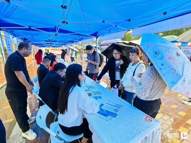 9月17日,小雨淅沥,西咸新区金秋招聘季秦汉新城专场招聘活动现场却一片火热。在周陵街办迎宾大道的王府井奥莱・西咸小镇上,来自不同行业的企业摊位整齐排列,工作人员热情地向求职者介绍企业情况和招聘岗位,前来咨询的市民群众络绎不绝。