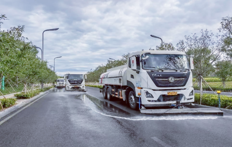 传统装置出水量大,一辆25吨洒水车满载14吨水,仅能作业15至20分钟,水资源浪费严重。同时,作业产生的污水易溅脏过往车辆、污染道路两侧绿化带,蒸发后还会形成扬尘,既影响市民出行体验,又制约城市生态环境提升。