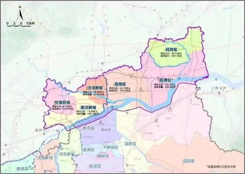 从地理区位可以看出,秦汉新城地处渭河北岸,是贯穿西咸新区南北、连接西安与咸阳的关键板块,也是西安“拥河”发展南北两岸联动呼应的关键一环。秦汉新城作为多重“核心”,客观的地理位置,奠定了其作为“北跨”第一站的基础。