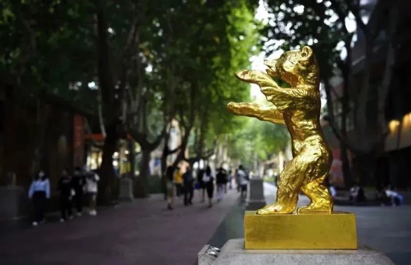 在大雁塔的东北方向,一条“星光熠熠”的大道两旁立满了各式奖杯雕塑,记录着属于中国电影的高光时刻:《红高粱》捧回了中国电影第一座德国柏林国际电影节最佳故事片金熊奖;《老井》获得了日本东京国际电影节最佳故事片金麒麟奖……
