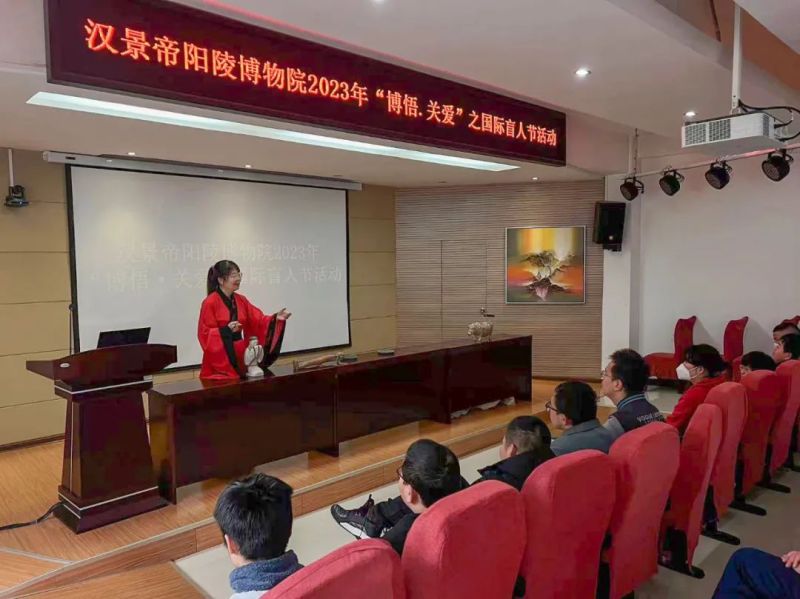 近日,汉景帝阳陵博物院走进陕西省城市经济学院举办2023年“博悟·关爱”之国际盲人节活动。