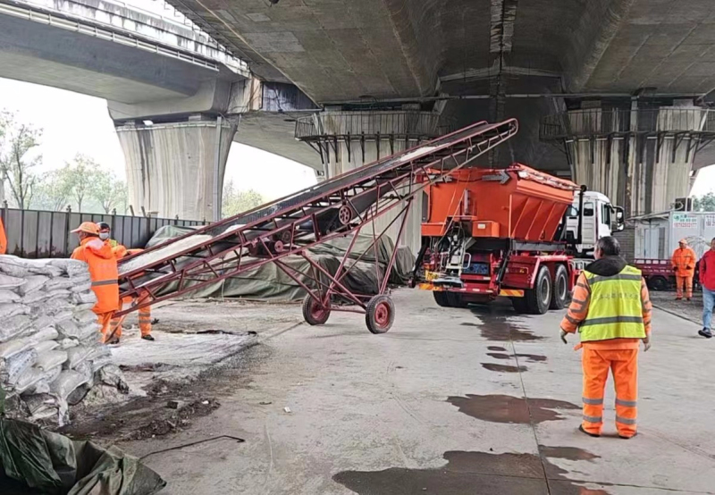 执法支队高度重视,立即启动冬季市政道路扫雪除冰应急方案,安排四辆撒布机到横桥底下,并抽调20名环卫工人到横桥装融雪剂,对所有桥梁、坡道和涵洞撒布融雪剂,共计消耗融雪剂5吨。