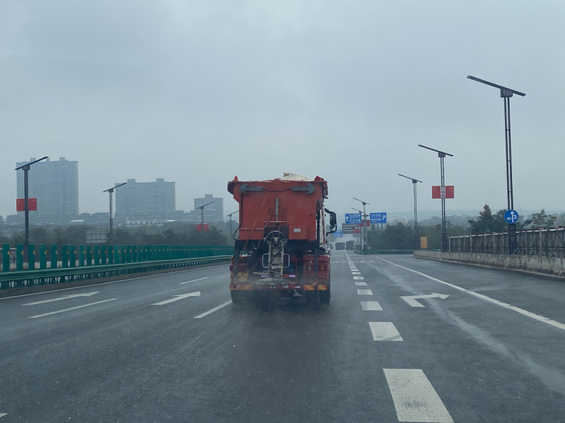 为防止积水因气温低冻结变滑,确保日间车辆、行人出行安全方便,工作人员对辖区主次干道进行巡查,一旦发现有路段积水较多,立刻抛撒融雪剂,防止路面结冰。