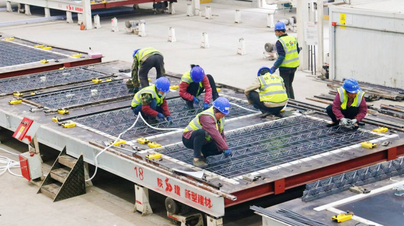 在陕建新型建材国家装配式建筑产业基地生产车间里,工人们正忙着赶生产,一旁,由大型智能机械和养护设备组成的生产流水线引人注目。陕建新型建材200多亩厂区内,建有PC、市政、模具和桁架筋4大生产车间。车间采用国内外先进生产工艺,配置成套生产设备,建有墙板自动化生产线、板类构件自动化生产线、管片自动化生产线、固定台模、全自动化钢筋加工生产线等多条高效能生产线,可生产内外墙板、楼梯构件、场馆看台、地铁管片和市政管廊等装配式预制产品。通过扩产增速,如今陕建新型建材实际产能已提升至近20万立方米,利润增长率超100%。
