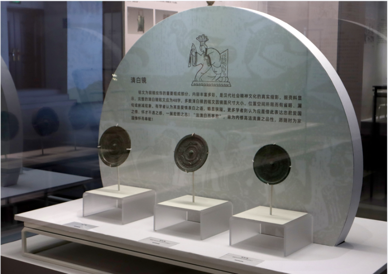 铭文为铜镜纹饰的重要组成部分,内容丰富多彩,是汉代社会精神文化的真实缩影。据资料显示,完整的清白镜铭文应为48字,多数清白镜的铭文因镜面尺寸大小、位置空间所限而有省略、漏句或删减现象。