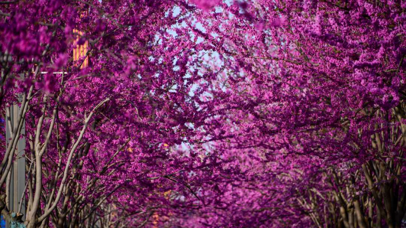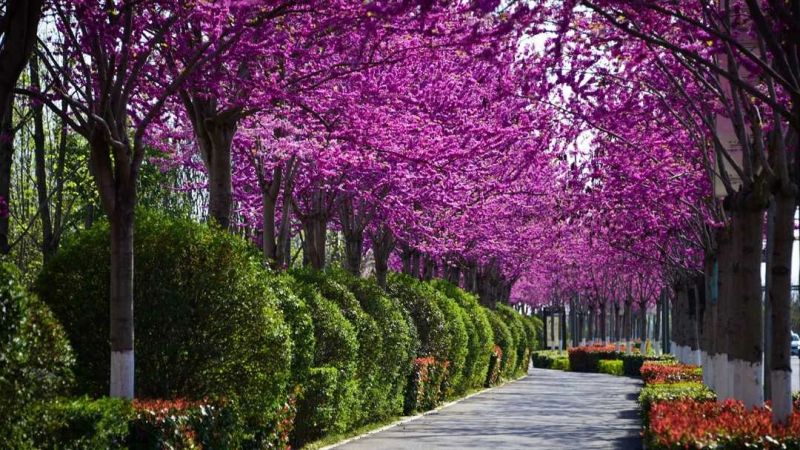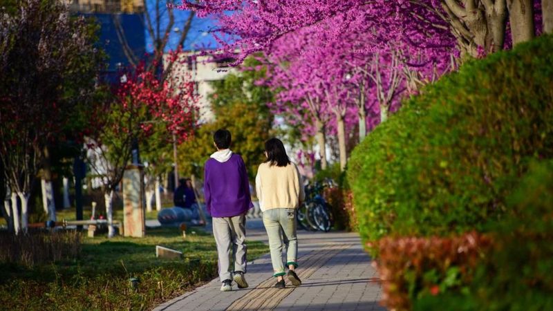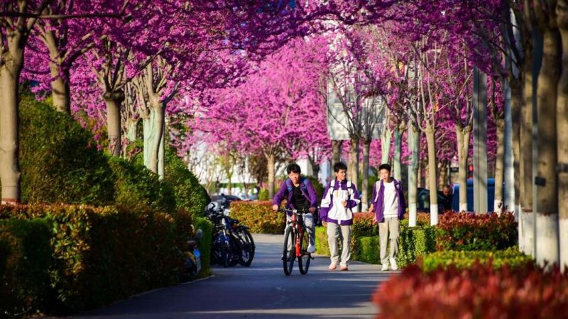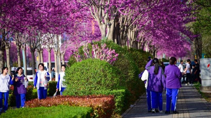 3月末,紫荆花如约绽放,将清华附中秦汉学校和兰池二路装点得如诗如画,花簇锦攒,神怡心醉。
