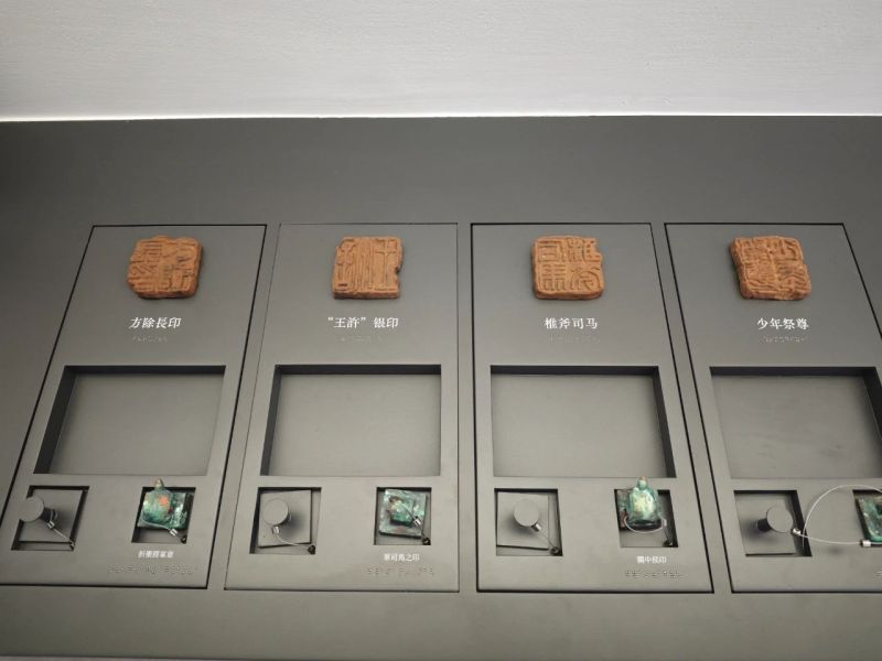 除了木简,该部分还展出秦汉时期的印章、篆刻、封泥等文物。其中印章部分,展现了古代社会的权力结构与审美趣味。清代艺术家徐坚,形容秦汉印章“壮如鼓剑,细如抽茧”,既有山岳般的坚卓,又有风柳般的婀娜。徐坚认为,刻印的秘诀在于“先章法,后刀法”,前者为形,后者为神,临摹秦汉官私印,是掌握治印技艺的终南捷径。