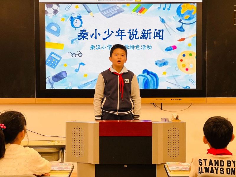 立冬时节,漫步秦汉小学校园,耳边不时传来学子的琅琅读书声。学校的楼道、走廊墙上,各种学生绘画、手工作品琳琅满目。在教学楼1楼中心处,还设置了一个别致的“风华小舞台”,旁边的小画板上,清楚地记录着每天的宣讲绘本名目……