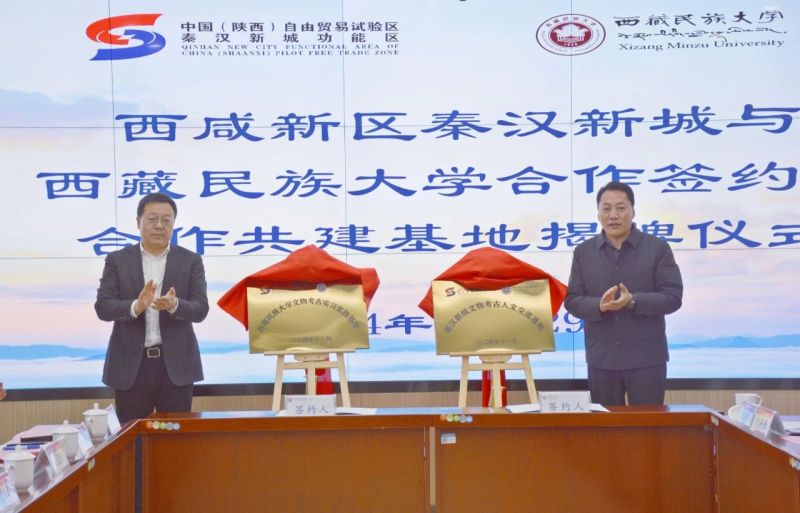 11月29日,西咸新区秦汉新城与西藏民族大学签订合作协议,在文物保护、人才培养、人文交流等方面深化合作。西藏民族大学文物考古实习实践基地、秦汉新城文物考古人文交流基地同时揭牌。