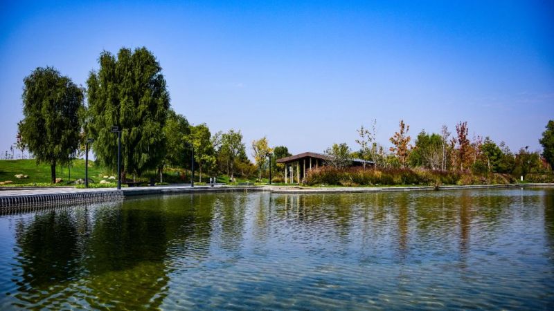 大尺度园林,大面积景观,四季斑斓的渭河景观带、莽莽苍苍的西汉帝陵群、生态优美的大秦文明园、果香浓郁的张裕瑞那城堡酒庄……地处南渭北泾“双河腹地”的西咸新区秦汉新城,城市绿化率达70%,公园、绿道、生态区、绿地,将城市变成一座巨大的“公园”。