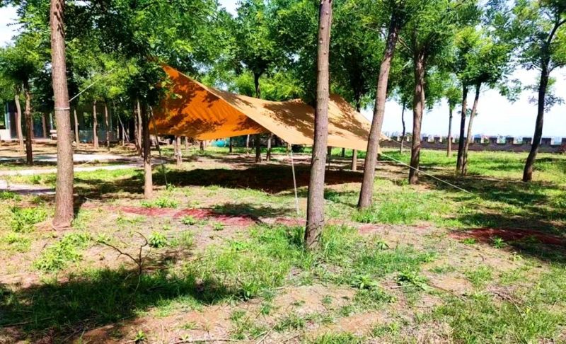 在树下挖野菜露营