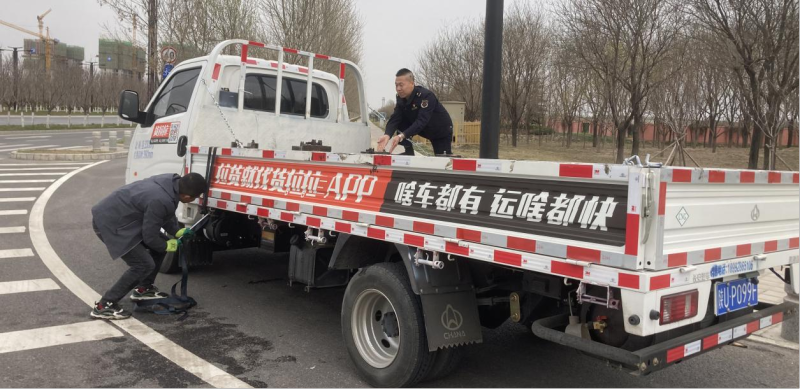 3月15日16时许,秦汉新城3号驿站执法人员巡查至辖区沣泾大道与泾渭大道东交叉口时,发现路边有一辆货拉拉车辆倾斜半空,赶忙停车上前查看车辆倾斜原因并检查有无人员受伤被困。执法人员发现车内无人,司机正站在车另一侧打救援电话,现场无人受伤,车辆有倾覆可能。经了解,该司机拉运一车铁墩子从空港新城运往临潼区,在十字路口转弯时因货物未固定牢且转弯速度较快导致货物因惯性侧滑,致使车辆重力失衡倾斜半空,无法前行,司机停车后发现仅靠自己一人无法挪动铁墩,便站在车旁打道路救援电话求救。