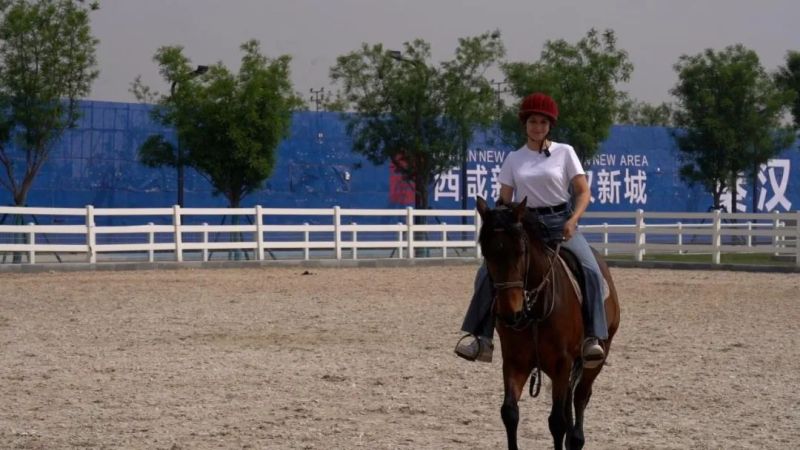 参观现场,丝路青年纷纷体验马术文化。“我小时候就会骑马,对马有很深的感情。”来自俄罗斯的长安大学留学生谢奕舒表示,很早就听说秦汉新城有一个马术中心,今天终于可以骑着马儿“驰骋”在中国的土地上。