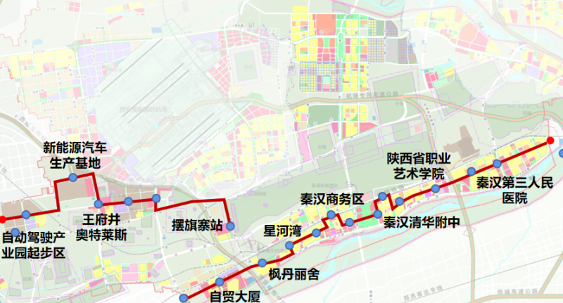 在秦创原·渭河科创带、西咸新区·秦汉自动驾驶产业园打造2条自动驾驶短途接驳线路,总长度约40公里,串联轻轨站、产业园、居民区、学校、医院、办公等人流集中区,满足市民短距离通勤需求。