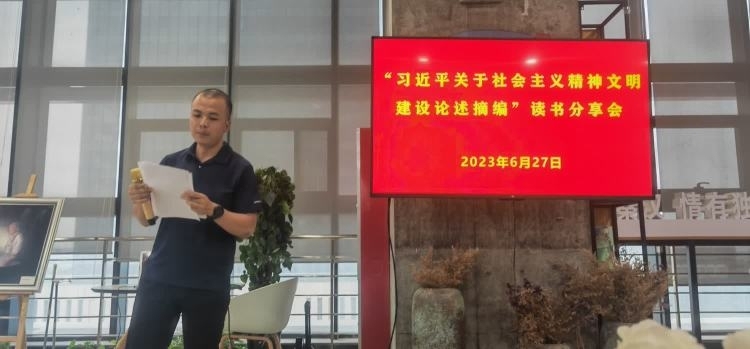 发展和经济运行部文镇同志,和参会人员分享了《习近平关于社会主义精神文明建设论述摘编》读书心得,习近平总书记指出实现中华民族伟大复兴,需要物质文明极大发展,也需要精神文明极大发展。