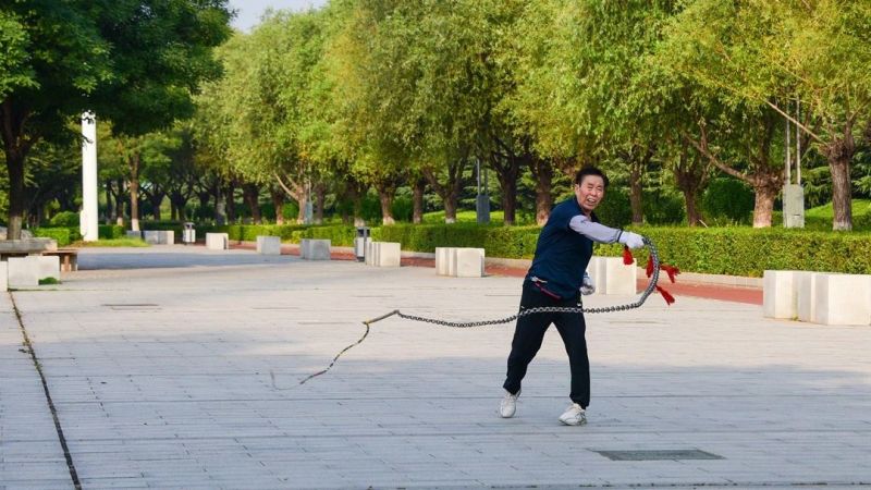 如果你早晨途经兰池大道北侧的小广场,老远就能听到清脆又响亮的“啪……啪……”声,两位大爷手中的钢鞭上下翻飞,配合脚步变换,每一次挥鞭都带着风。“在小区旁边练会吵到邻居,我们每天骑自行车来这里,没什么人,挨着渭河,风景也更好。”甩响鞭的大爷说。