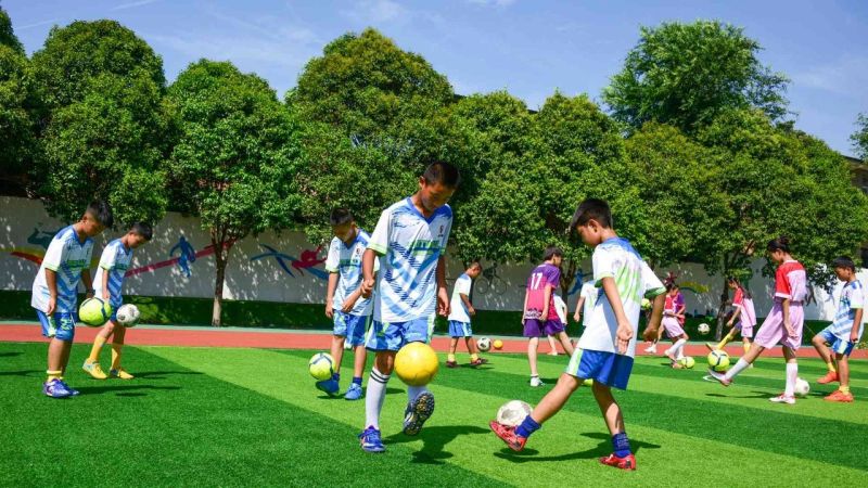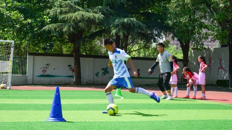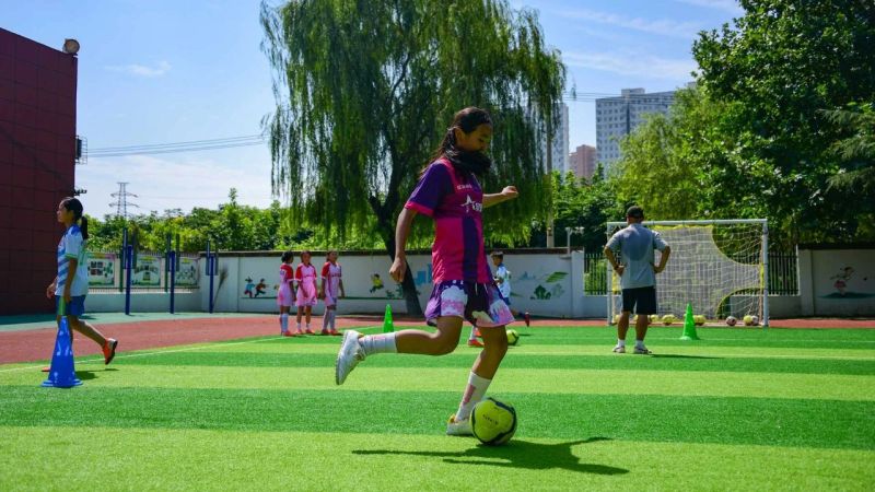 暑假的校园里没有了平日的读书声,操场里却回荡着孩子们的欢声笑语,时不时夹杂着教练严厉的指令“传球注意力度!” “别走神,反应快一点!”被点名的孩子,紧盯着飞驰而来的足球,稳稳接住,抬脚回传给远处的队友。