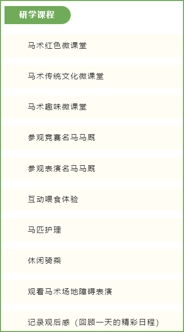 “读万卷书,行万里路”是传统游学的教育理念,通过研学,让孩子们走出校园,在实践中开拓视野、丰富知识,加深对文化的深层次理解。日前,秦汉国际马术中心成功获批西咸新区中小学生研学旅行实践教育基地。基地将继续致力于为不同年龄段的中小学生提供更丰富、更多样的研学旅行方案、课程及体验活动,让每一位孩子“研”有所思,“学”有所获,“旅”有所感,“行”有所成。