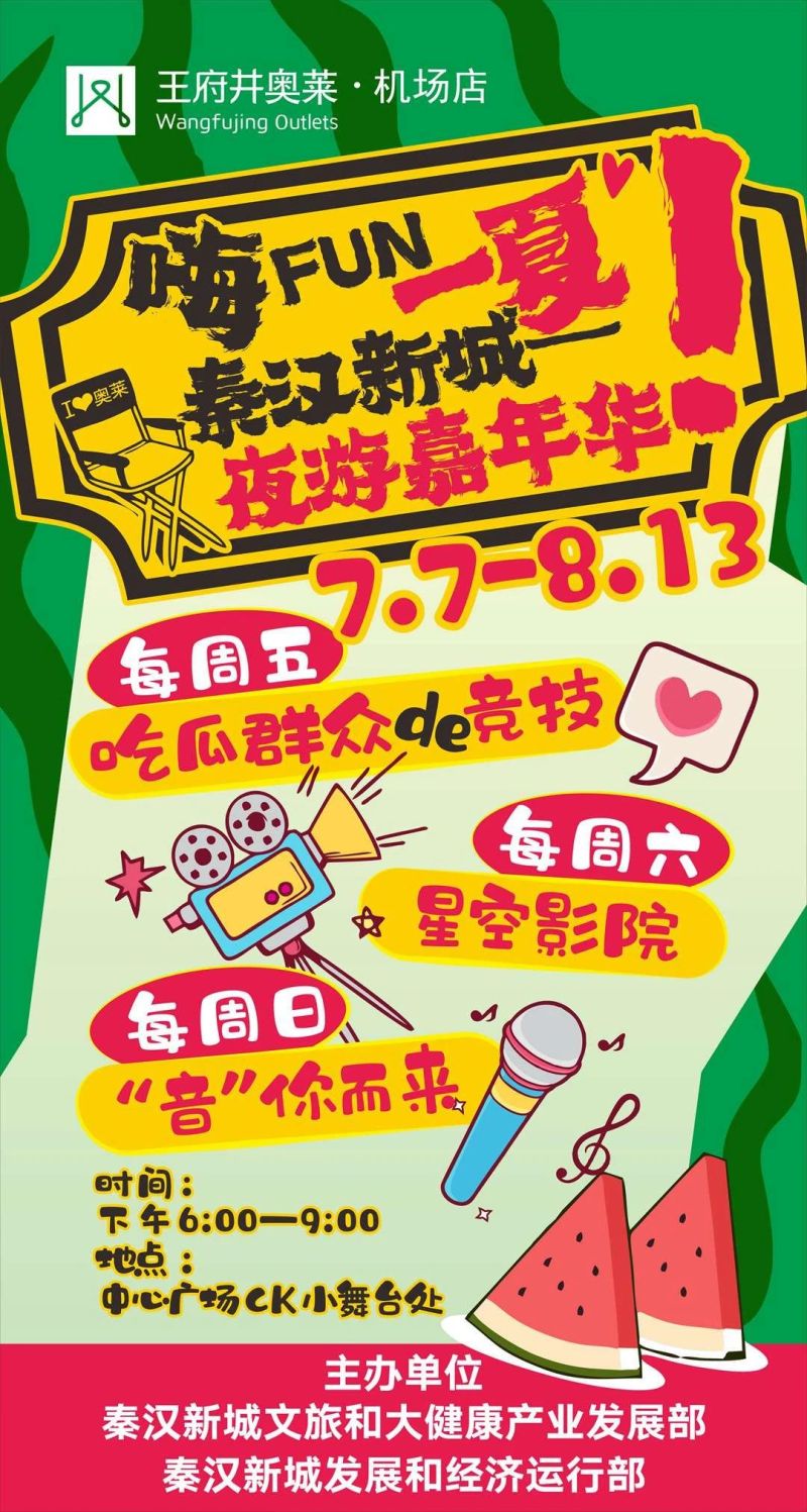 嗨FUN一夏,秦汉新城夜游嘉年华来啦!即日起至8月13日,每周五、周六、周日,吃瓜大赛、纳凉电影、星空音乐会,每天不重样,一起来参加吧!