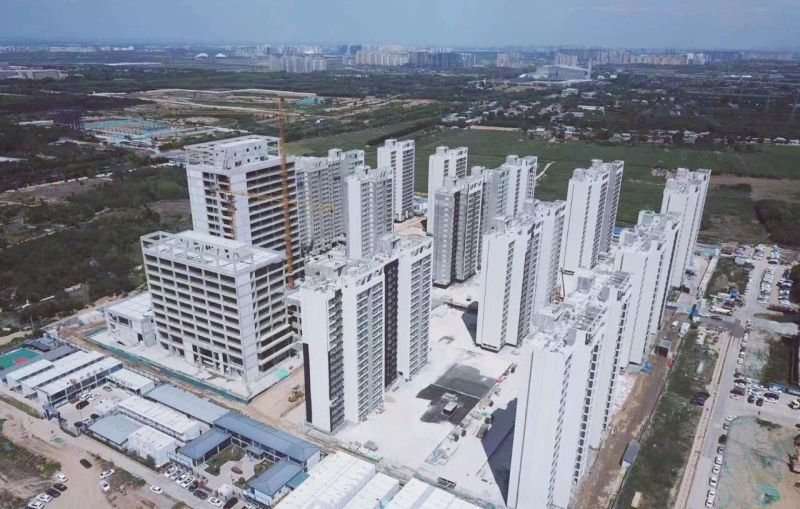 目前,18栋住宅楼已全部实现主体结构封顶、完成二次结构施工和窗框安装,正在进行室内外装饰装修、电梯安装、配电室土建等施工,线盒、电箱、给排水、风管、消防管道等安装工程总体完成80%。现场共有施工人员610余人、机械20台。