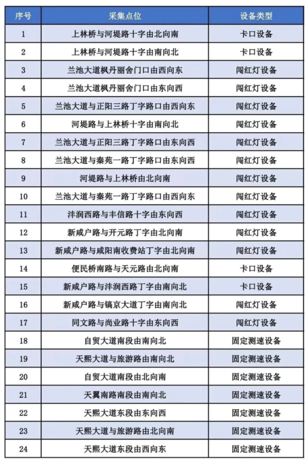 为进一步规范行车秩序,保障道路交通安全,预防道路交通事故,根据道路交通实际情况,现决定自2023年9月23日起启用以下24处道路交通技术监控设备,现将有关内容公示如下: