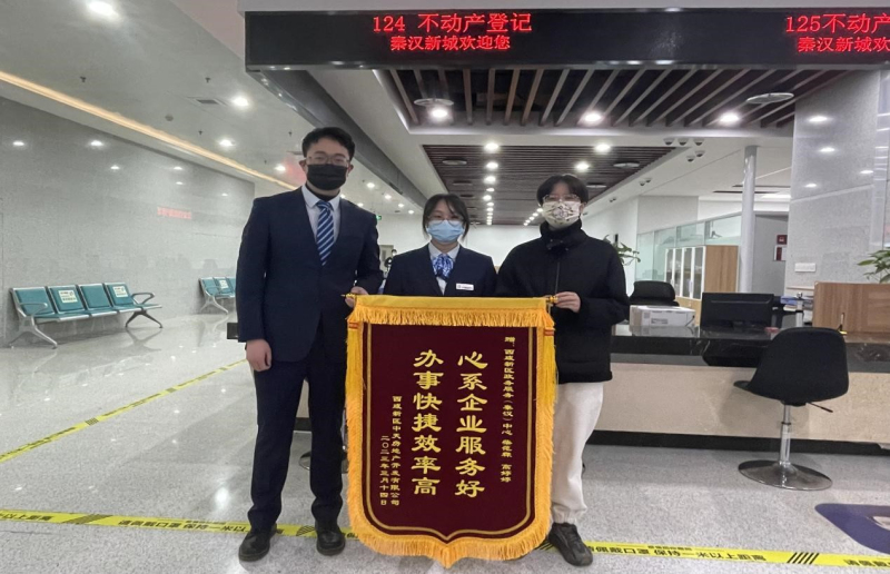 “咱们秦汉的服务真是太好了,贴心又高效。”西咸新区中天房地产开发有限公司工作人员侯女士,向西咸新区政务服务(秦汉)中心不动产登记窗口工作人员表达了深深的感谢,并送去了一面写着“心系企业服务好 办事快捷效率高”的锦旗。