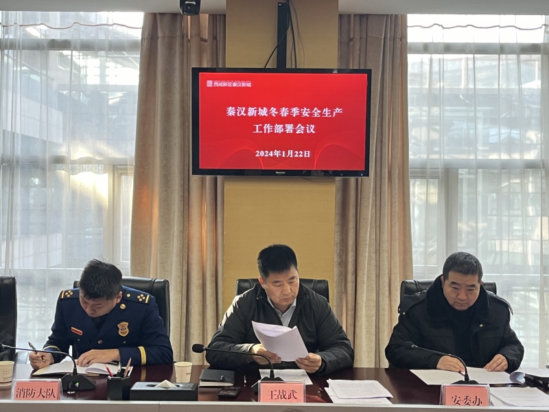 1月22日上午,秦汉新城组织召开冬春季安全生产工作部署会议,学习习近平总书记关于安全生产重要指示批示精神,全面贯彻落实省、市、新区及新城近期安全生产工作的安排部署,统一思想,压实责任,从讲政治、促发展、保安全的高度,以强有力的措施消除各类安全隐患,确保辖区人民群众生命财产安全。秦汉新城党委委员、管委会副主任王战武,新城安委会各成员单位,秦汉集团,产发集团,各产业园发展中心负责同志参加。