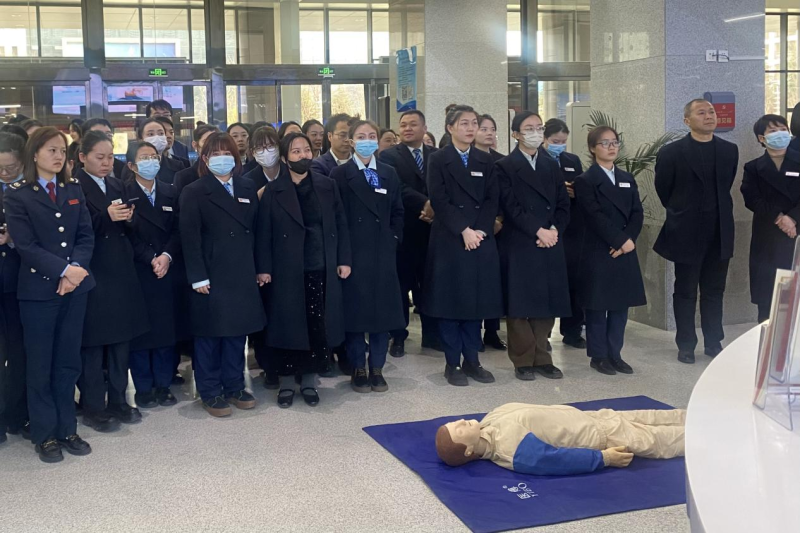 “快来人啊!这儿有人昏倒啦!”一阵急促的呼喊声瞬间响彻四周。走近一看,原来是秦汉新城政务服务大厅正在进行“突发公共事件应急处理”的培训演练,每个人都聚精会神地听讲解,生怕错过任何一个重要的知识点。