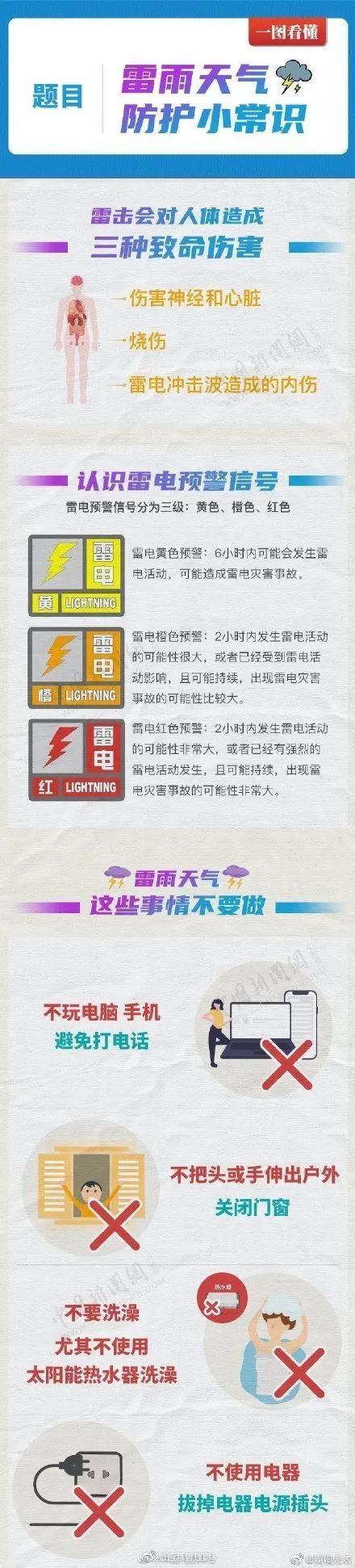 雨天、大风天气外出,要远离广告牌、工棚等临时建筑物,谨防高空坠物。另外,不要让雨伞、雨衣遮挡前方视线,以防和车辆产生碰撞。如遇雷雨天气,不要在空旷地、野外、水池边行走,更不要在室外接打电话。
