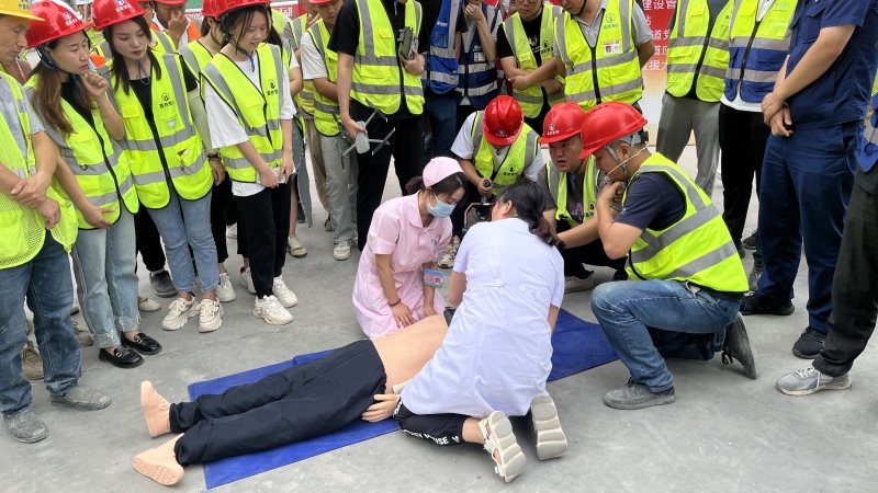 演练环节,模拟建筑施工企业突发高坠与火灾事故。演练开始后,企业第一时间上报险情,开展火情控制、工艺排险、伤员急救等先期处置,任务清晰、行动迅速、专兼结合开展应急处置行动。演练检验了预案,锻炼了队伍,提升了建筑施工领域生产安全事故的应急救援能力和水平。