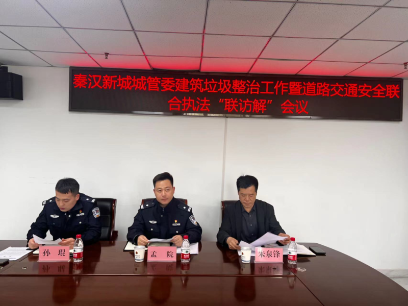 3月26日,秦汉新城城管委组织召开建筑垃圾整治工作暨道路交通安全联合执法会议。会议由西咸交警大队执勤三中队副中队长孙琨主持。综合行政执法支队副支队长朱泉锋传达3月21日会议纪要,并对下一步联合执法工作提出相关要求。交警大队执勤三中队队长孟院部署下一步联合执法工作,与会人员进行讨论并确定下一步联合执法工作实施方案。