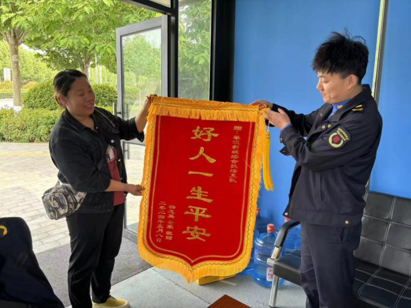 5月8日上午,秦汉新城综合行政执法支队5号驿站接到群众送来的一面锦旗,感谢执法人员在危难时刻伸出援手。事情还要追溯到5月5日晚上凌晨2点左右,5号驿站值班人员贾源博、段辉在上林桥执勤途中遇到一少年求助。经了解,该少年由于天黑骑电动车不小心摔倒导致受伤,同时手机也损坏了,值班人员帮助其联系家长,随后立即拨打120急救电话并帮忙将其送上急救车。时隔几日后,孩子家长亲自赶往驿站对执法人员的及时救助表示感谢。