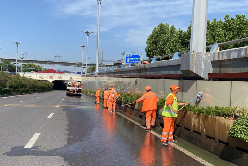 执法支队市容办组织保洁人员对陕历博秦汉馆、大秦文明广场、星河湾酒店、美丽豪酒店等重点区域开展全面大擦洗、大冲洗工作,强化道路冲洗力度,科学增加机扫、冲洗频次,提高作业标准,对车行道进行全面人机结合冲洗,达到路面见本色,无垃圾、无砂石、无积尘、无灰带;坚持“横到边、纵到底”的擦洗模式,从细节入手,对果皮箱、路灯杆护栏等“城市家具”进行全面擦洗清洁及消杀。