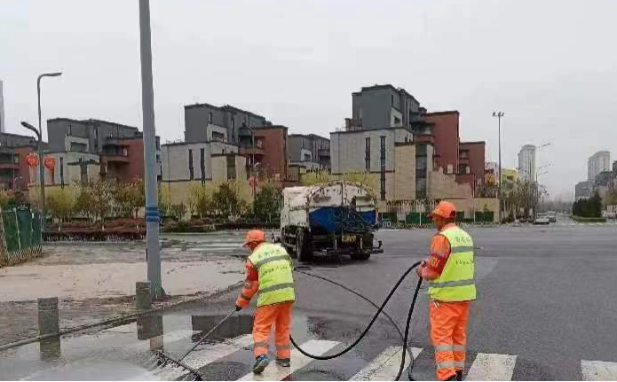 环卫作业精细化,城市环境再提升。执法支队市容环卫部门不断提升环卫管理水平,提升环卫作业标准,多点发力,补足短板,高质量巩固市容环境卫生成果。严格落实道路普扫制度,持续加强巡回保洁力度,对主干道路面及绿化带内各类垃圾做到及时清理。加强机械化作业力度,每日科学调配机械车辆,采取“机械+人工相结合”作业模式,对区域主次干道、人行道及非机动车道等进行深度冲洗作业,对道路护栏下、道牙边、窨井盖等细节部位进行精度冲洗作业,确保“路见本色”,道路无积尘。