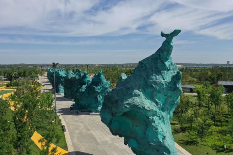 园区内最引人注目的当属中轴线上的《秦人的步伐》雕塑群组。秦人雕塑形象随着排列顺序由模糊变清晰,这体现了他们在历史洪流中追求崛起的坚定意志。此外,还有6组不同主题雕像群,从“文治”到“武功”,从“商鞅变法”到“天下一统”,同样生动形象地展现出深厚的秦文化。