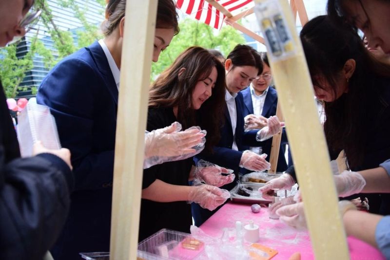 活动现场一角,有别于其他热闹的场景,大家在这里安静地拿着手上的材料专心致志地DIY月饼。现场准备了丰富的食材和工具,员工们热情高涨,揉面、包馅、定型……一个个精巧可爱的甜点很快制作完成,大家开心地品尝自己亲手做的冰皮月饼,有的则打包带给亲朋好友。