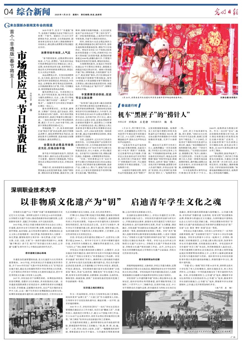 当前,过旅游年、过文化年已经成为新的年俗。文化和旅游部产业发展司司长缪沐阳介绍,文化和旅游部组织开展“欢欢喜喜过大年”2025年春节主题文化和旅游活动,共七大板块、27项主题活动。在丰富节日文旅供给方面,将推出惠民演出、非遗体验、文博展览等系列活动。