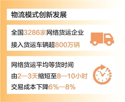 网络货运平台发展方兴未艾,全国3286家网络货运企业,接入货运车辆超800万辆,连接起730多万名驾驶员。与传统运输方式相比,网络货运平均等货时间由2—3天缩短至8—10小时,交易成本下降6%—8%。