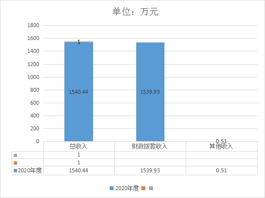 2020年度收入合计1540.44万元,其中:财政拨款收入1539.93万元,占99.97%;事业收入0万元,占0%;经营0万元,占0%;其他收入0.51万元,占0.03%。
