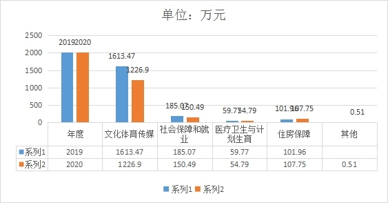 2020年度支出总额为:1540.44万元。其中:文化体育与传媒支出1226.90万元、社会保障和就业支出150.49万元、医疗卫生与计划生育支出54.79万元、住房保障支出107.75万元,其他支出0.51万元。2019年度支出总额为:1963.27万元,其中:文化体育与传媒支出1613.47万元、社会保障和就业支出185.07万元、医疗卫生与计划生育支出59.77万元、住房保障支出104.96万元。变化主要原因是严格按照标准执行,单位机构改革造成减少。