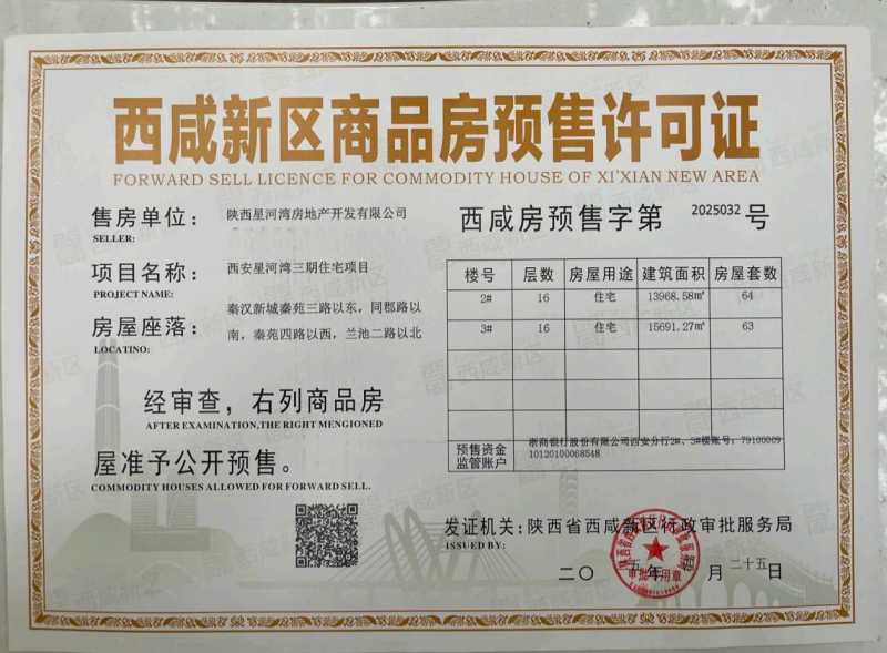 (一)预售楼盘名称:西安星河湾三期住宅项目