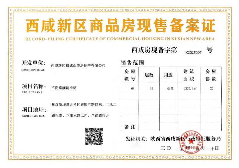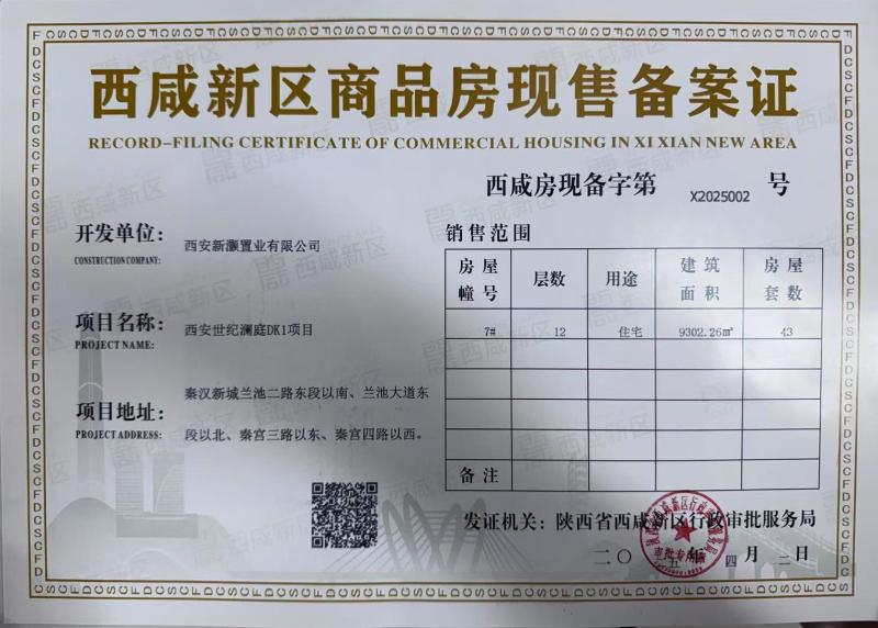 (四)现售楼盘名称:西安世纪澜庭DK1项目