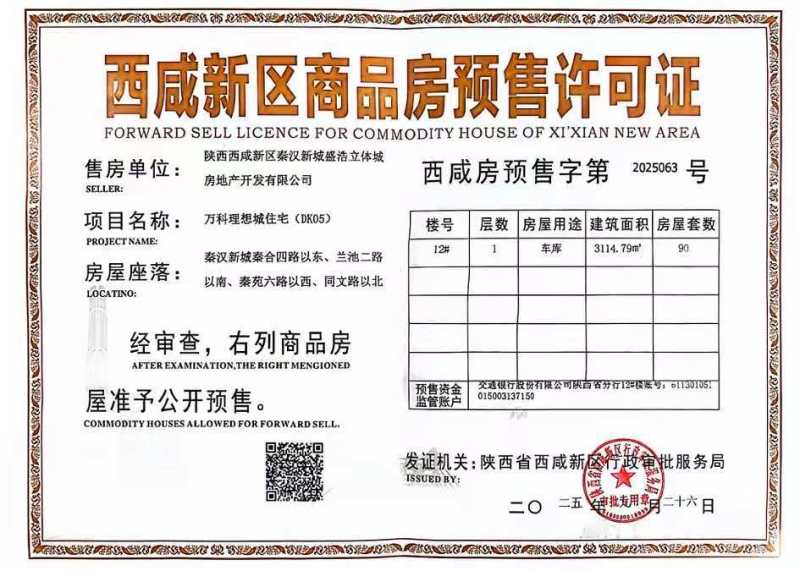 (二)预售项目名称:万科理想城住宅(DK05)