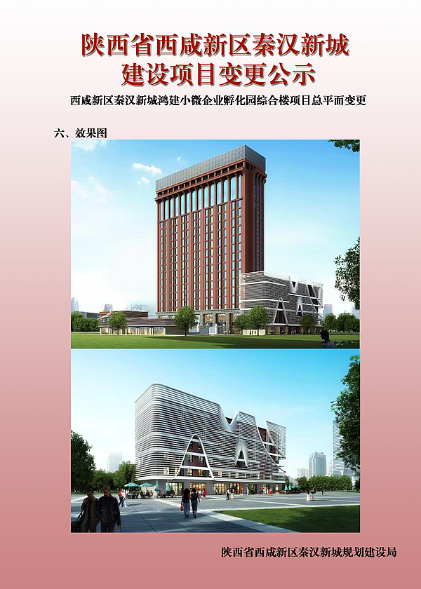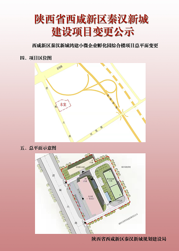 西咸新区秦汉新城鸿建小微企业孵化园综合楼项目总平面变更公示