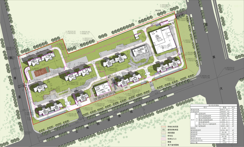 修改后总建筑面积为260497.77㎡(其中地上建筑面积166525.88㎡、地下建筑面积93971.89㎡)、容积率2.61、建筑密度20.00%。详见总平面示意图。