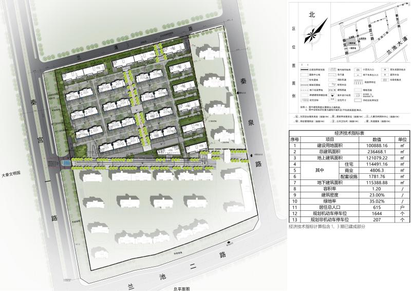 项目位于西咸新区秦汉新城秦宫一路以东、兰清路以南、秦泉路以西、兰池二路以北区域。秦汉佳苑规划净用地面积100888.16㎡,总建筑面积236468.1㎡,主要建设住宅及相关配套,该项目设计方案经文物部门审查同意。详见总平面示意图。