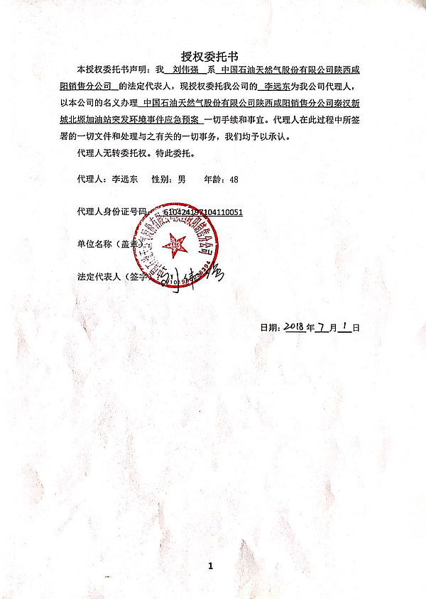 关于2018年9月7日中国石油天然气股份有限公司陕西咸阳销售分公司秦汉新城北塬加油站